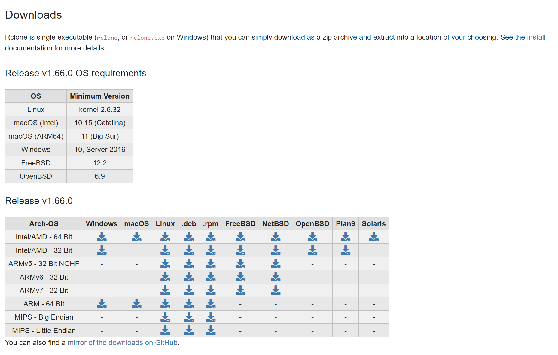 下载完解压后得到上面的文件,需要注意的是Rclone依赖winfsp,去官网下载安装完即可。https://winfsp.dev/