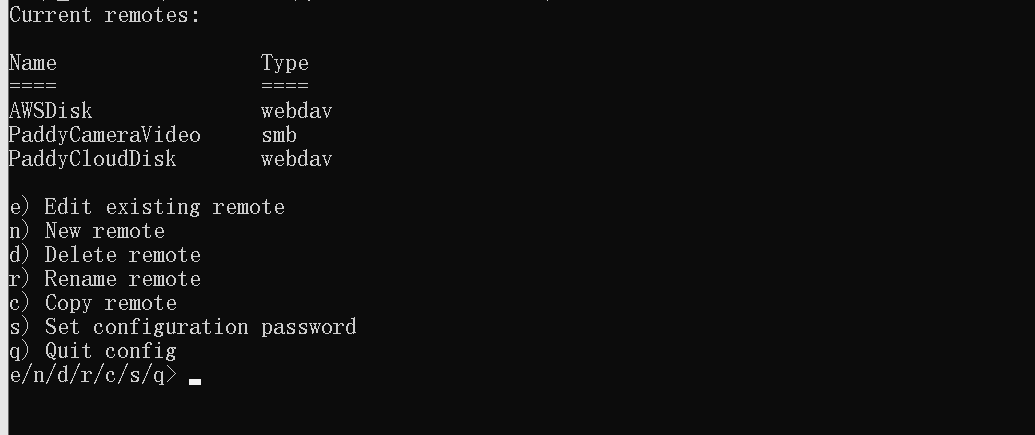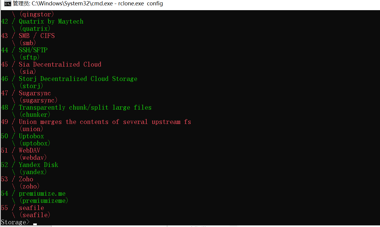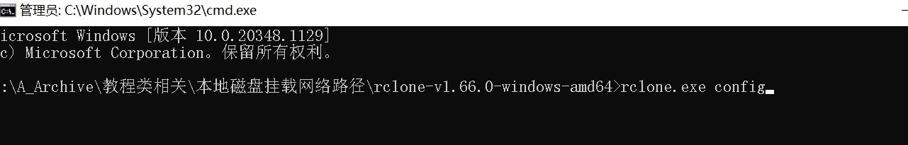 1、添加存储配置:管理员打开cmd,cd到文件所在目录,输入rclone.exe config