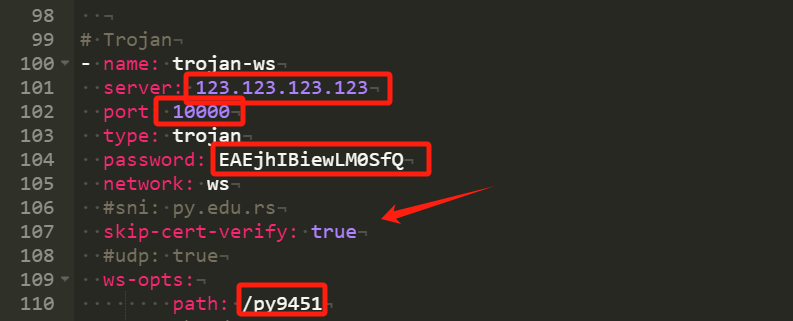 这里根据前面填写的信息填上去就可以了,需要注意的是箭头地方,如果没有使用域名证书一定!要!有这一行,如果使用域名证书加密就要注释这一行。