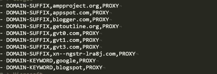如:DOMAIN-SUFFIX,qq.com,PROXY